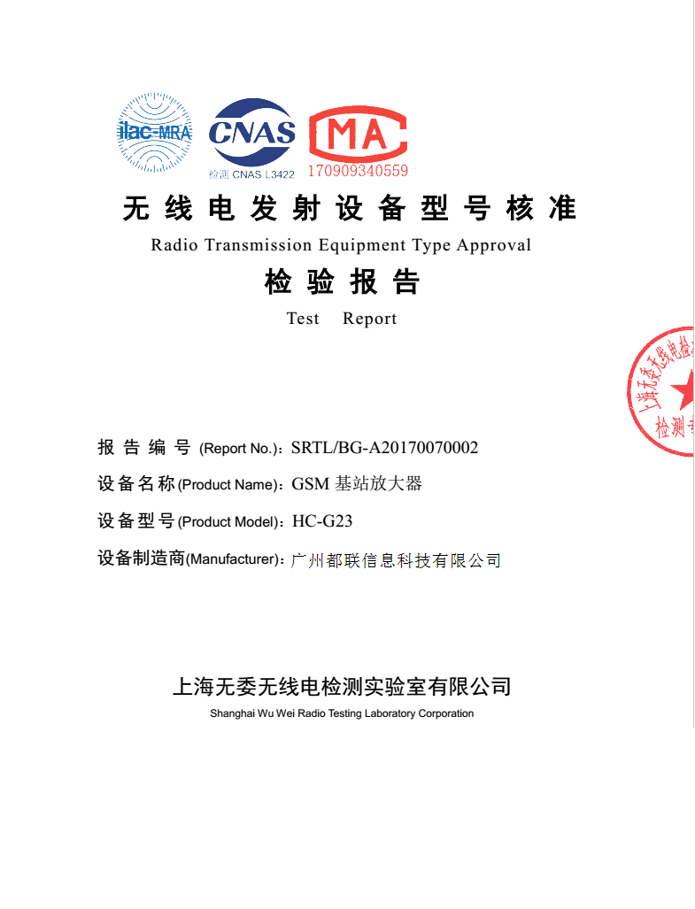 無線電發(fā)射設備型號核準報告: